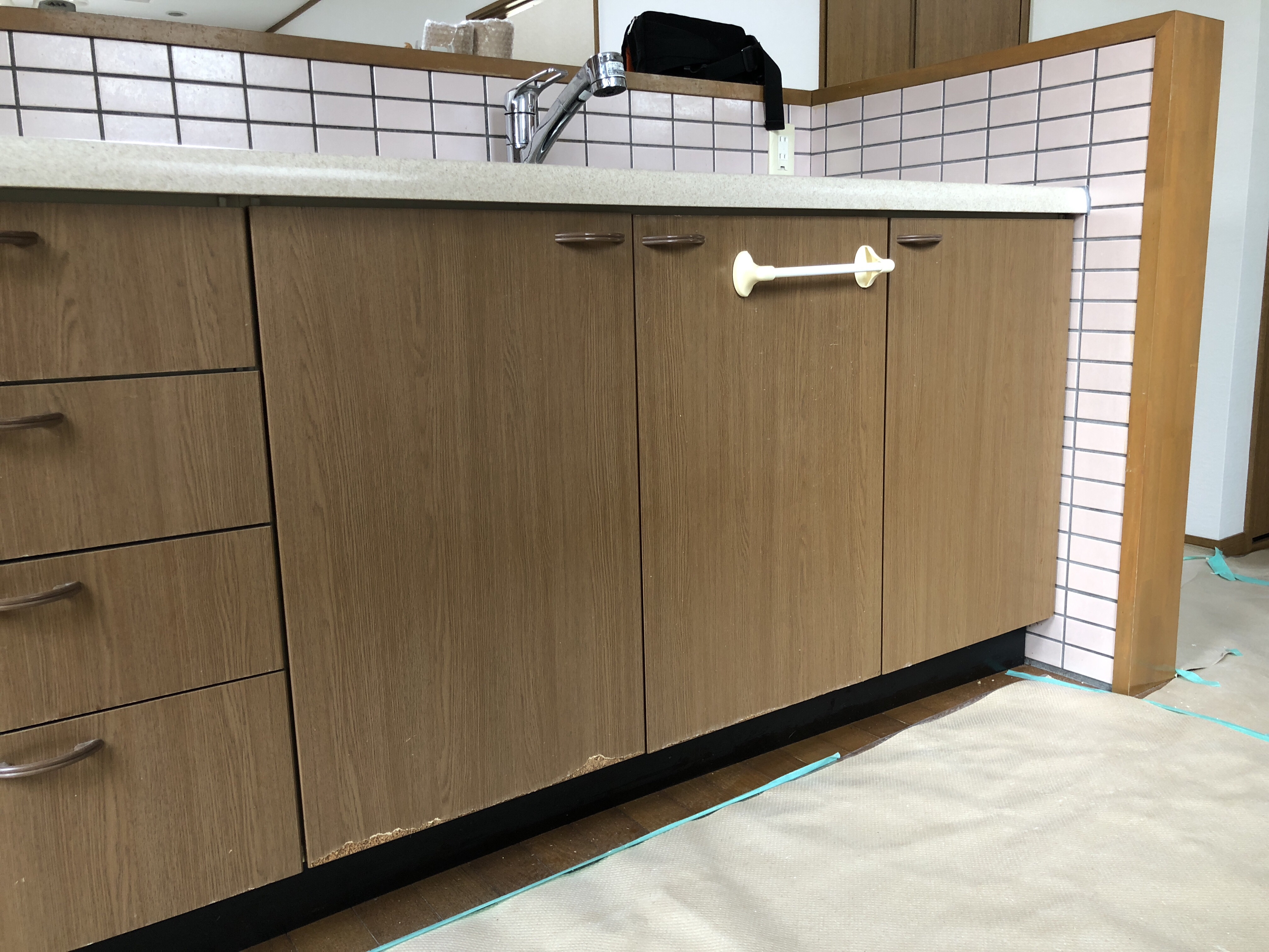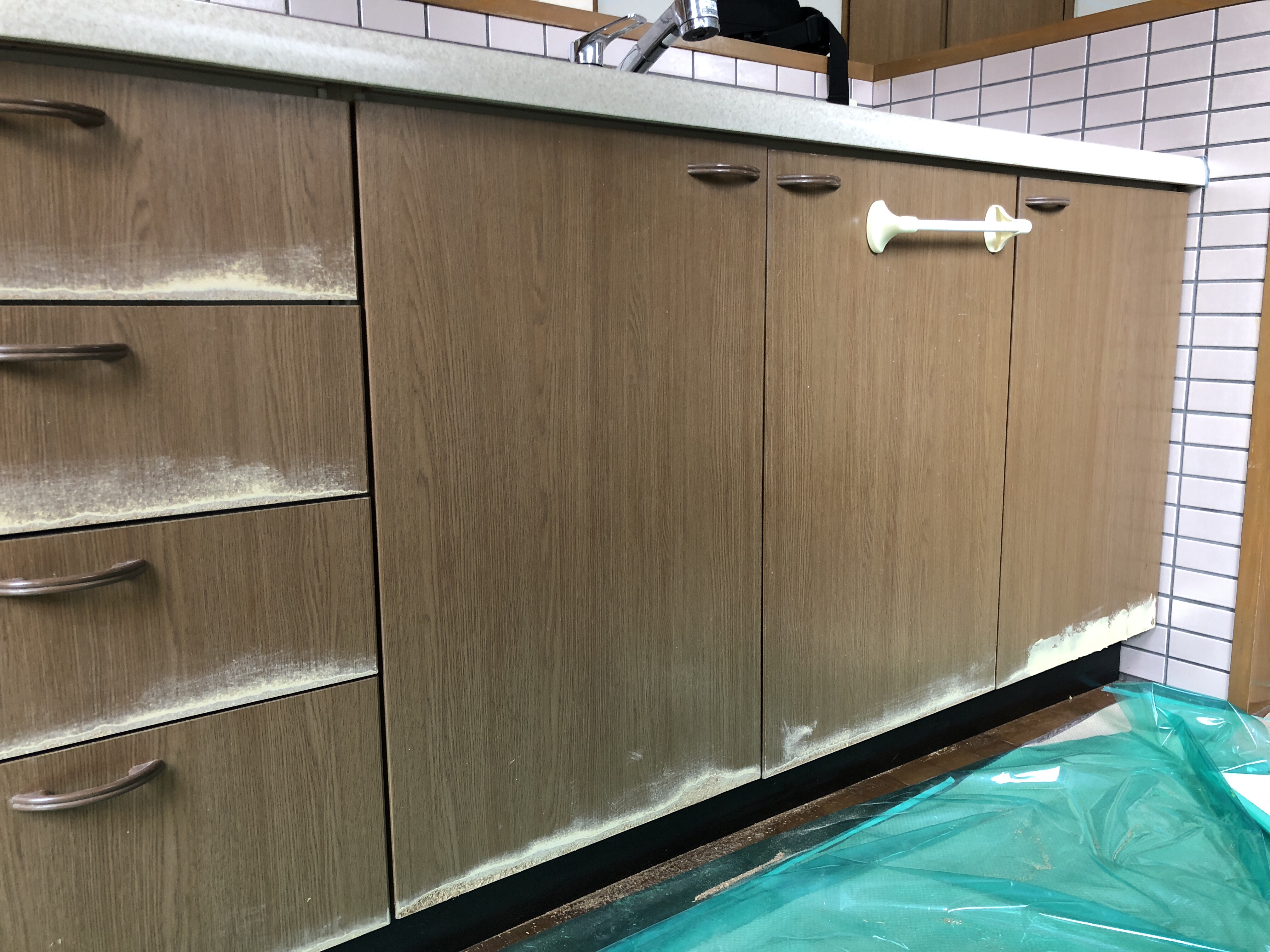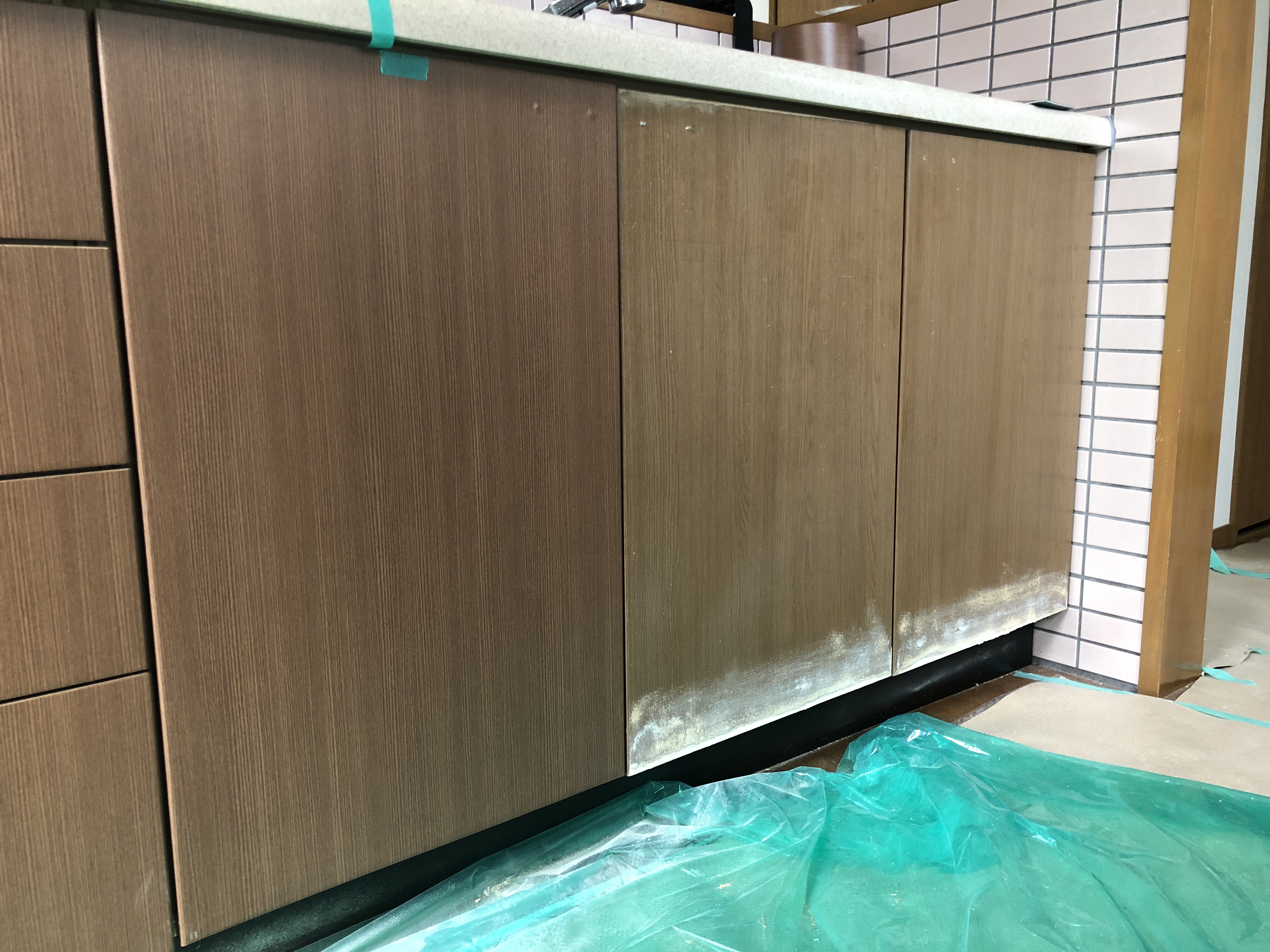 今回は、キッチン上部の吊り戸扉は痛んでいませんでしたので、キッチン下側の流し台扉のみの工事でした。